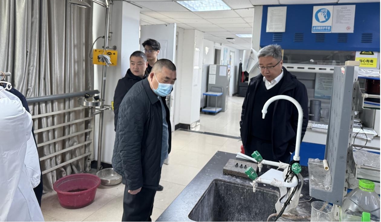 院党委书记王夫寿带领学院安全管理人员对机房教学区域、科研实验室以及研究生自习室等教学科研场所的卫生状况、用水用电、消防安全以及仪器设备使用安全情况开展了拉网式安全检查。在检查过程中,王书记要求研究生自习室实行卫生排班制度,工位挂牌管理,明确责任到人,要求科研人员及时清理实验室垃圾,做好实验防护,为师生营造安全、整洁的学习与工作环境。检查组还仔细查看了仪器设备的运行状况,认真查阅了安全规章制度的落实记录,并与在实验室开展科研工作的师生进行了深入交流。王书记强调,在实验室开展科学研究,必须严格遵守安全操作规程,确保每一个实验环节都安全可靠。检查组对实验室存在的安全隐患作了记录并在学院办公会上形成意见,学院暂时无法解决的问题向学校相关部门报告,建议及时整修。