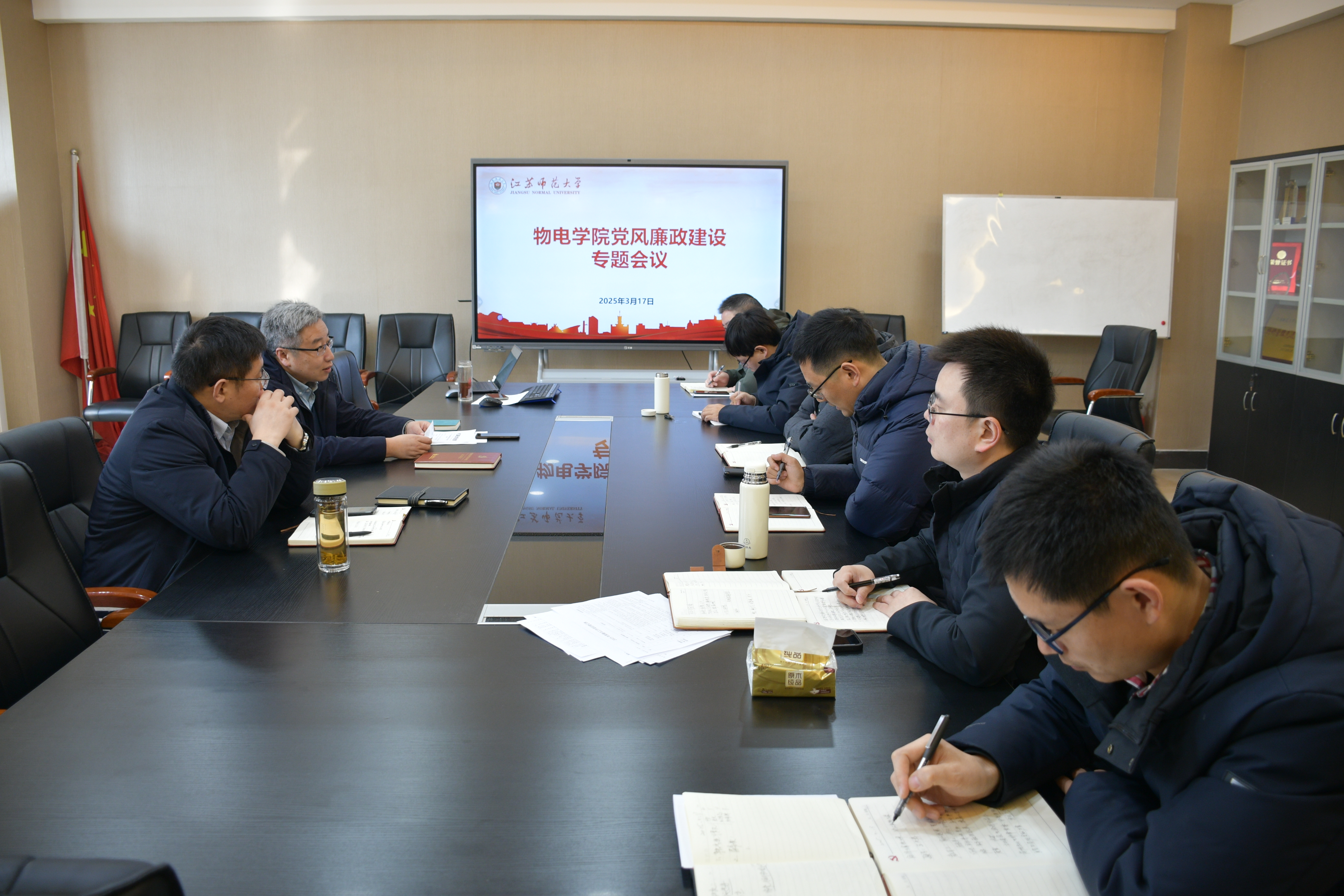 3月17日上午,物电学院在325会议室召开2025年党风廉政建设专题会议,学院领导班子全体成员参加会议。