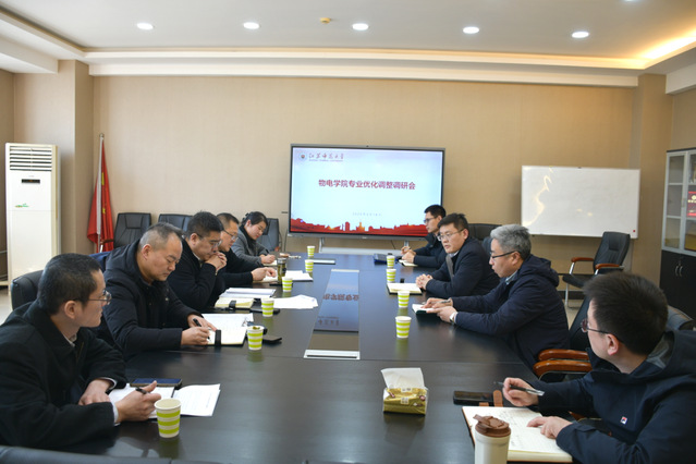 3月18日下午,副校长赵鹏一行赴物电学院就本科专业优化调整情况开展专题调研。教务部部长闫长春、教务处副处长满在江、杨仲迎以及物电学院领导班子成员共同参与研讨。