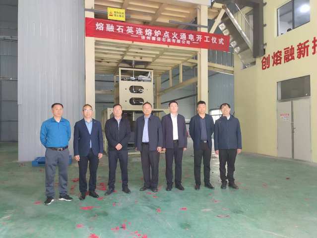 中午12时,在科学技术研究院、国内合作处、技术转移中心、物电学院等部门领导、新沂市科技局负责人、项目研发团队及企业代表的共同见证下,徐州赛诺石英有限公司高效节能熔融石英连熔炉成功通电点火,正式开始整机设备的调试运行。