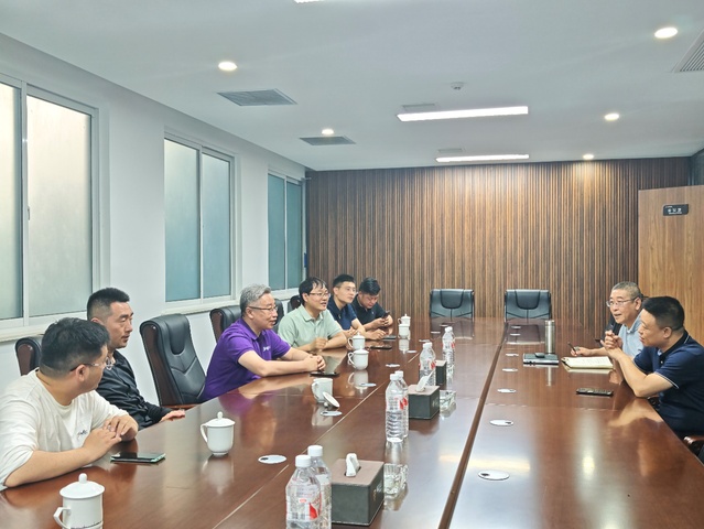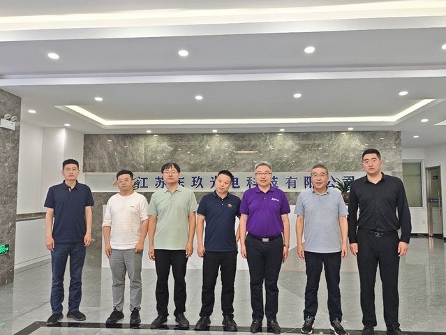 随后,考察团队深入江苏东玖光电科技有限公司考察。江苏东玖光电科技有限公司是一家研发、生产、销售高端靶向材料的高新技术企业。在企业负责人的引导下,王夫寿一行参观了公司的研发中心和生产车间,直观了解了企业的生产工艺流程、产品性能特点以及质量控制体系。参观结束后,双方举行了座谈会。座谈会上,王夫寿首先介绍了学院产学研合作的总体情况,他提到学院近年来在科研成果转化、人才联合培养等方面取得的一些成效,强调学院始终秉持开放合作的态度,致力于与企业构建深度融合的产学研合作模式,实现资源共享、优势互补。张乐重点与企业技术部门负责人探讨了产学研合作的具体问题,围绕靶向材料领域的技术创新、工艺改进等方面展开深入交流。江苏东玖光电科技有限公司负责人详细介绍了企业发展情况,包括公司的研发团队、生产规模、市场布局以及未来的发展战略,并着重阐述了与物电学院可能开展共同研发的技术点,表达了与学院在技术研发、人才培养等方面开展深度合作的意愿。