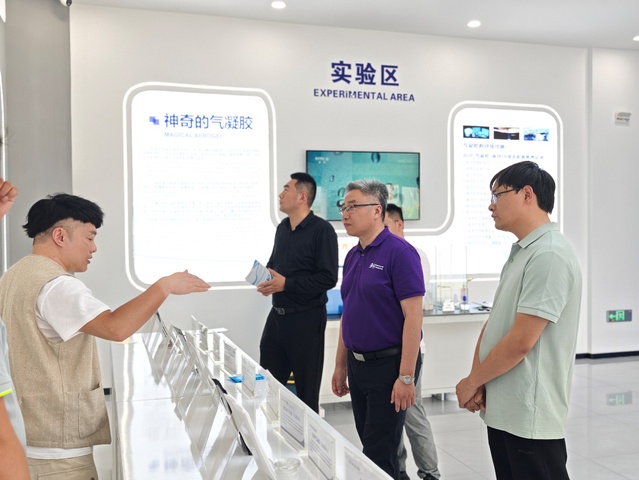 物电学院党委书记王夫寿一行4人首先来到江苏珈云新材料有限公司,参观了公司展示大厅,随后双方进行了座谈。座谈会上,王夫寿表示,此次产学研合作洽谈及访企拓岗是学院推进“党建+社会服务”、深化校企合作、服务地方经济发展的重要举措。江苏珈云新材料有限公司专注于高端气凝胶的研发与生产,在行业内具有较高的知名度和影响力,学院希望与江苏珈云新材料有限公司在科研项目合作、实习实训基地建设、人才联合培养等方面建立长期稳定的合作关系,为企业输送更多高素质的专业人才,同时也为学院师生提供更广阔的实践平台和科研机会。张乐结合学院的专业特色和科研优势,提出了多个与企业发展需求相契合的合作方向,引发了企业方面的兴趣。江苏珈云新材料有限公司负责人对物电学院考察团队的到来表示热烈欢迎,并介绍了企业在技术创新和人才培养方面的需求。他表示,随着公司业务的不断拓展,对新技术及专业人才的需求日益增长,与物电学院的合作将为企业注入新的活力,希望借助学院的科研力量,进一步提升企业核心竞争力。