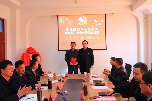 饮食服务中心党支部高坤与食品和工设学生党支部张佳签署共建协议书