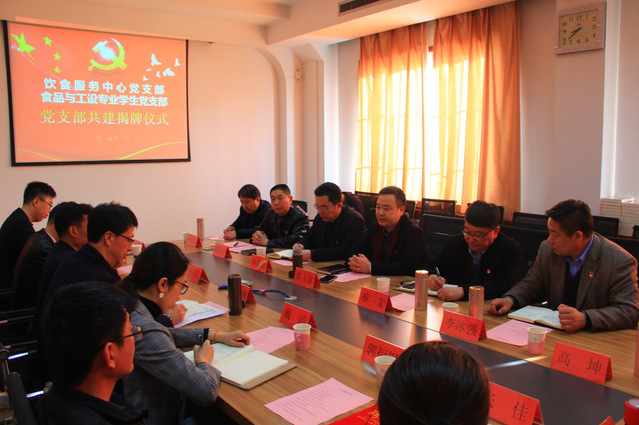 为深入贯彻落实校党委吕传毅书记在《中国共产党山东理工大学第三次代表大会上的报告》中提出的“要深化人才培养模式,提高学生成长成才能力”的会议精神,发挥基层党组织和广大党员在构建全员育人教育格局方面的重要作用,本着“围绕中心、服务大局、优势互补、共同提高”的原则,后勤管理处饮食服务中心党支部和农工学院食品与工设学生党支部双方共同协商,就党支部共建事宜达成共识。3月15日上午,饮食服务中心党支部和食品工设学生党支部签约仪式在农工学院12号教学楼会议室举行,出席会议的有校党委常委、副校长查玉喜,农工学院和后勤处各位领导,以及农工学院教师代表、学生代表、饮食中心班子成员和职工代表。饮食服务中心主任杨嵩先主持。
