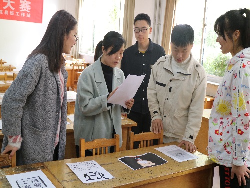 在交流过程中,评委老师根据多年设计经验对参赛选手进行指导,简短语言透露着老师的教导与期盼。评选结束后,易班工作站成员将每一份作品拍照并上传到网上,由广大师生在线上投票进行二次投票,最终以两次评选综合成绩为准。