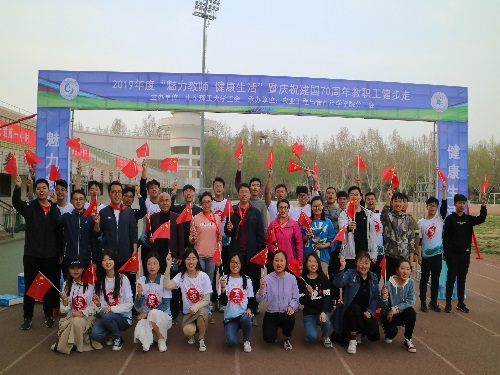为响应全民健身运动号召,增强教职工健康素质,突出“每天锻炼一小时,快乐工作一整天,幸福生活一辈子”的活动宗旨,向新中国成立70周年献礼。4月4日下午,机关四分工会、离退休工作处分工会、农业工程与食品科学学院分工会及资源与环境工程学院分工会教职员工于第二体育场参加全民健步走活动。三组健步走开幕式由农业工程与食品科学学院党总支书记柳铎主持,校党委常委、副校长易维明教授及四个分工会181名教职工参加。