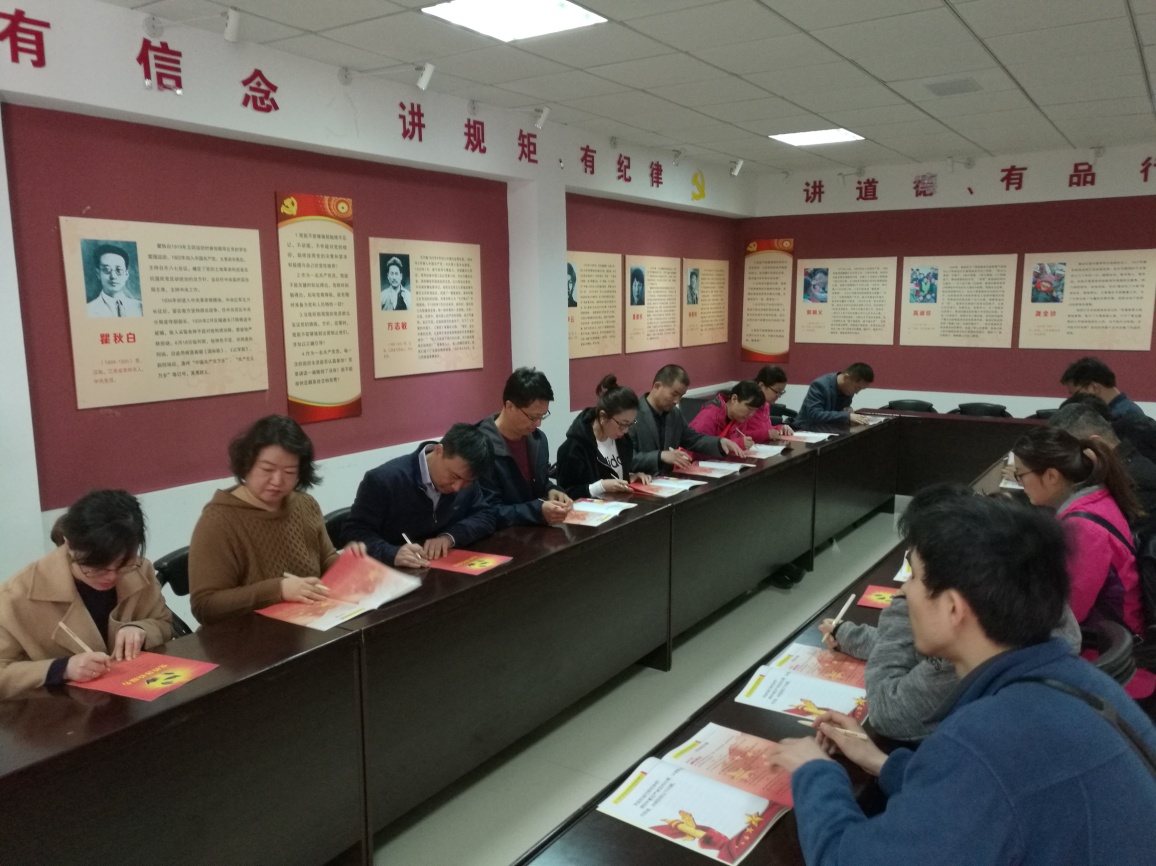 为更好的贯彻习近平总书记提出“要突出问题导向,学要带着问题学,做要针对问题改”的要求,学院教工党员代表又参观了党性体检馆。体检馆分学习区、党性自检室、初心唤醒室、党性会诊室四个功能区。在参观学习区学党章,学习习近平总书记系列讲话;在初心唤醒室通过观看《党性教育宣传片—奋斗》认真思考入党动机;在党性自检室进行党性自检;在学院党总支书记柳铎的带领下重温入党誓词。同志们纷纷表示,通过党性体检,强化了自身的党性观念和宗旨意识,有了明确的学习目标和整改目标。