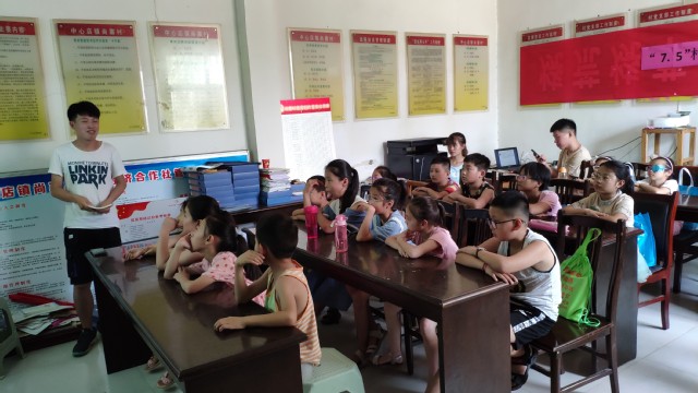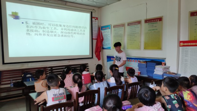 719日,支教课堂开课第一天,见面会之后,第一堂课教授学生们发生洪水时的自救知识。