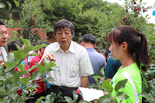 在山东省果树研究所和栖霞市农业局的大力支持下,7月20日上午,由山东果树研究所研究员李慧峰、栖霞市农业局局长程显华带队,日本教授伴野洁、社长永田荣一,沈阳农业大学教授吕德国、秦嗣军组成中日果树专家访问组,来到唐家泊镇肖家夼村苹果示范基地现场进行苹果种植指导,我院“霞光永栖”暑期社会实践团队全程协同此次活动的行。