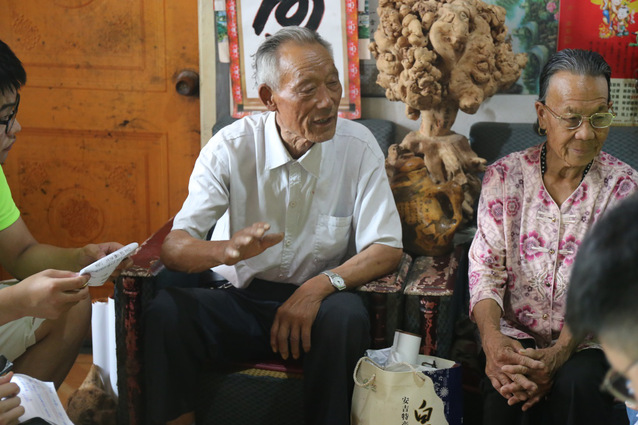 导语:2019年7月13日,“岱农崮业”实践团在省派蒙阴乡村服务队的带领下前往东屿村,与东屿村村支书张见泉探讨当地经济发展情况,随后去探望革命老人历福厚,听老人讲述革命故事和岱崮历史并同实践队成员分享书法、根雕作品,共同讨论优秀传统文化及革命文化传承问题。