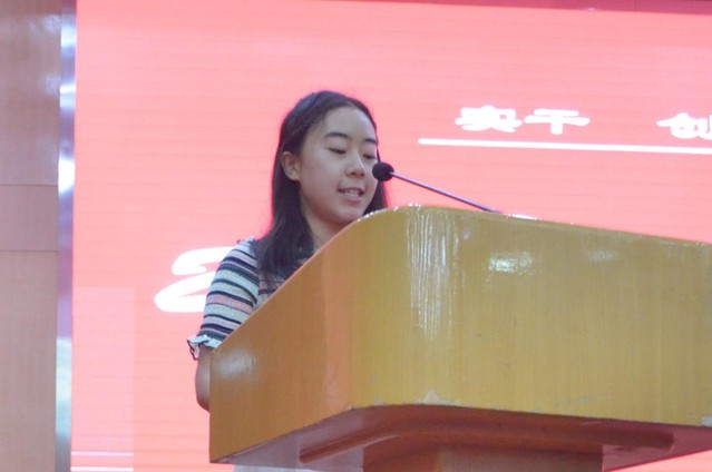 大会进行第四项,由新生代表黄睿发言,黄睿首先对各位领导、老师及学长学姐表示最崇高的敬意和最衷心的感谢。展望新的征程,她希望与全体2019学生共勉,勤学善问,博学善思,在“实干 创新 卓越 和谐”院训的指导下,踏实进取,求真务实,勤于实践,严格律己,不负老师和父母的期望,争做有社会责任、有创新精神、有专门知识、有实践能力、有健康身心的五有人才。