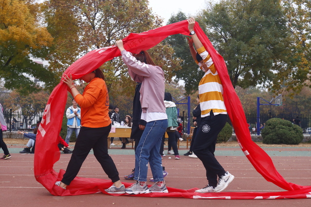 各项比赛开始后,第二体育场现场十分火爆,参赛选手信心百倍,热情洋溢。“花样跳绳”中参赛选手双手挥舞着跳绳无不展示着青春的气息;参加“成语大挑战”同学们满腹经纶,博学多才;“五人四足”的参赛团队各个激情四射,齐心协力;“你画我猜”项目也是趣味盎然,伴随着阵阵欢声笑语;“纸杯传水”参赛人员默契配合,争分夺秒。各项比赛有序进行着,冗长的队伍丝毫不减同学们参赛的热情,记录一次次被刷新,现场气氛紧张而又不失趣味。