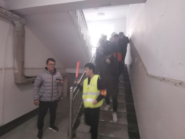 在“119”全国消防日来临之际,为进一步提高大学生安全防范意识,增强自我保护能力,掌握应对突发火灾的应变处置及逃生技巧,11月7日下午,我院在15号公寓楼举行消防应急疏散演练。此次演练由我院党总支副书记戴洁任总指挥,安全管理处副处长尹磊昌及相关工作人员、保安队员、学院全体辅导员、15号公寓楼全体学生参加。