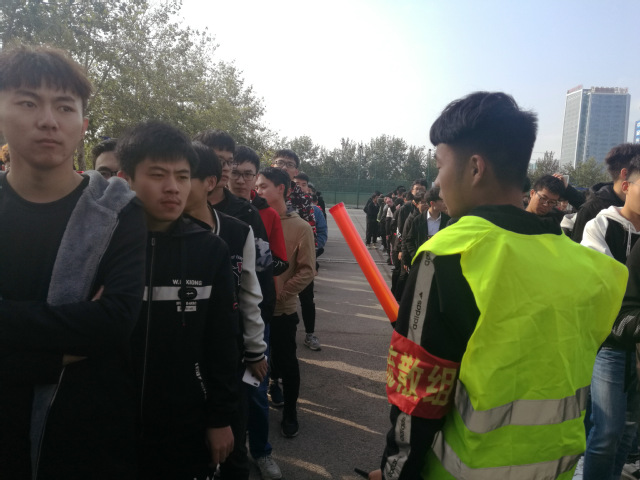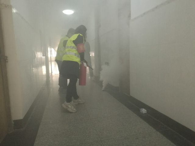 此次演练由消防指挥部指挥,通过通讯组、灭火组、疏散组、救护组、警戒组及后勤保障组配合完成。13点30分,随着“火灾”警哨声响起,疏散组按照预先设定的消防演练活动方案,迅速到位,指明疏散方向,按照设定的逃生路线,引导学生捂住口鼻沿着安全逃生楼道有序下楼,并达到指定安全位置。