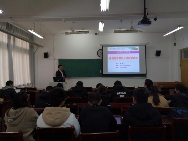 傅隆生副教授就“果实智能化分选技术研究”进行了系统的学术交流。就目前全球范围内的几种主流的分选方式,并举例说明每种分选方式在国内外做的较为领先的几家公司的运作方式和工作原理,并分析了其优缺点。随后博隆生副教授从“大水果”、“小水果”两方面根据其不同的特性着重介绍了其研究的主要内容。也对于交流中所提出的各类问题进行了详细的讲解。