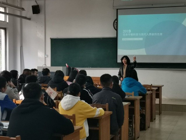 讲座过程中,田丽讲师为大家解释了口腔溃疡的发生是多种因素综合作用的结果,其包括局部创伤、精神紧张、食物、药物、营养不良、激素水平改变及维生素或微量元素缺乏。系统性疾病、遗传、免疫及微生物在口腔溃疡的发生、发展中可能起重要作用。如缺乏微量元素锌、铁,缺乏叶酸、以及营养不良等。然后借此提出吃什么可以预防口腔溃疡。例如,多吃牛奶,鸡蛋,肉类可以补充蛋白质,勤吃板栗,白菜可以很好的缓解病情。之后田丽讲师要向同学们普及了经期期间应有的饮食习惯以及相关的注意事项。全麦面包,燕麦,豆类等食品可以补充微量元素镁,经期期间可多食用。多喝枸杞泡水,加桂圆可以使手脚在冬天不再冰凉。最重要的是,在经期期间禁止吃辣,以免造成月经不调。