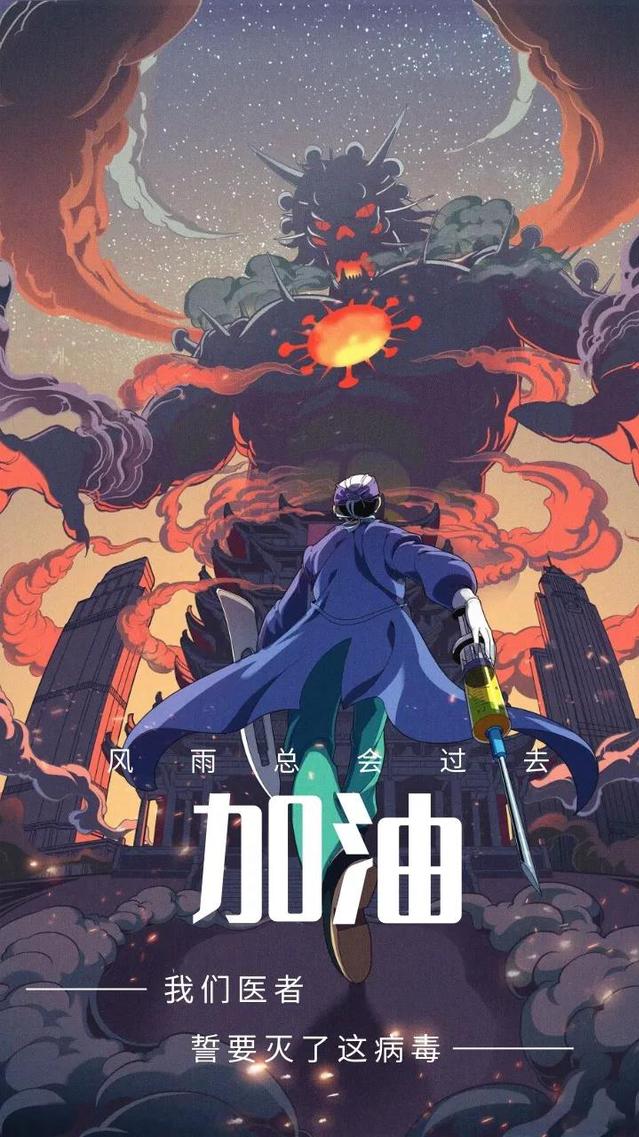 该海报为奋战在一线的医生们致敬,蝙蝠代表着此次新型冠状病毒感染肺炎,医生们不畏病毒的可怕,站在一线和死神夺命。