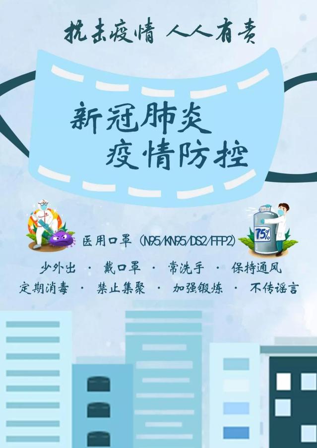 在新型冠状病毒侵袭的时候,我们每个人都应该都自身做起,按照党和国家的指示,保护好自己,保护好身边人,听从医生的各种有益的建议,全国人民团结一心,抗击疫情!