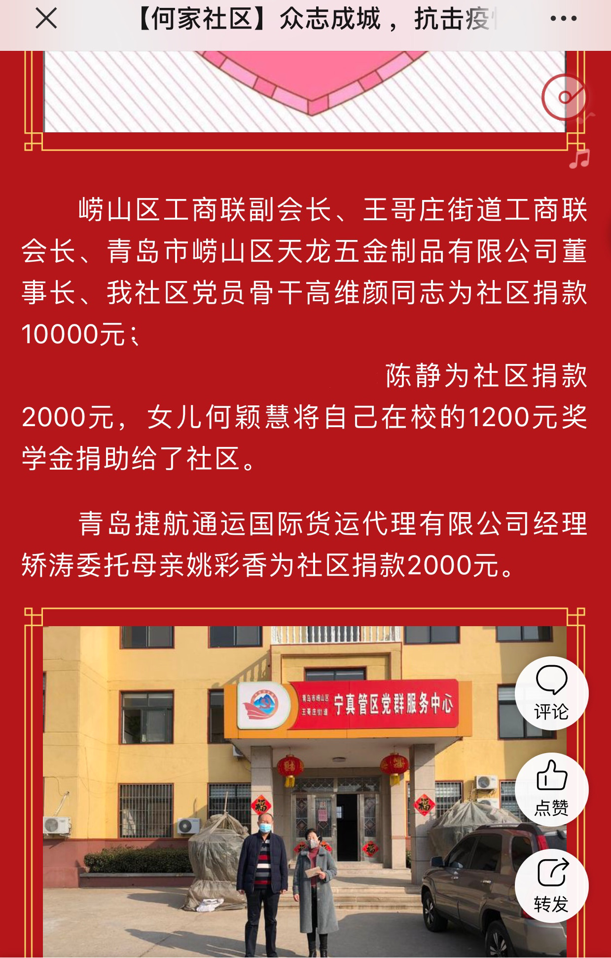 疫情防控进入关键时期以来,学校许多师生及学生家庭,也以不同形式,力所能及为病毒阻击贡献了自己的力量。