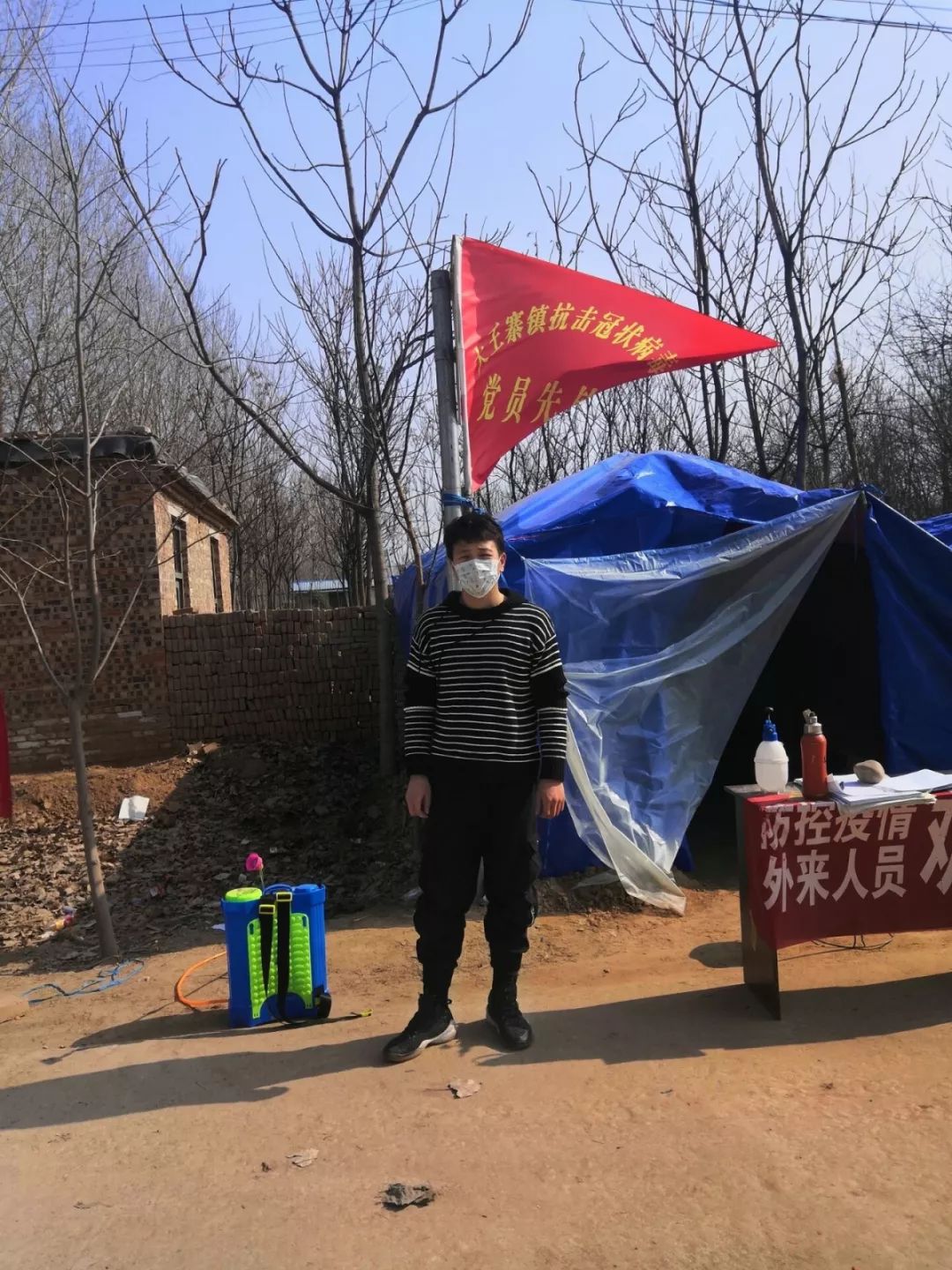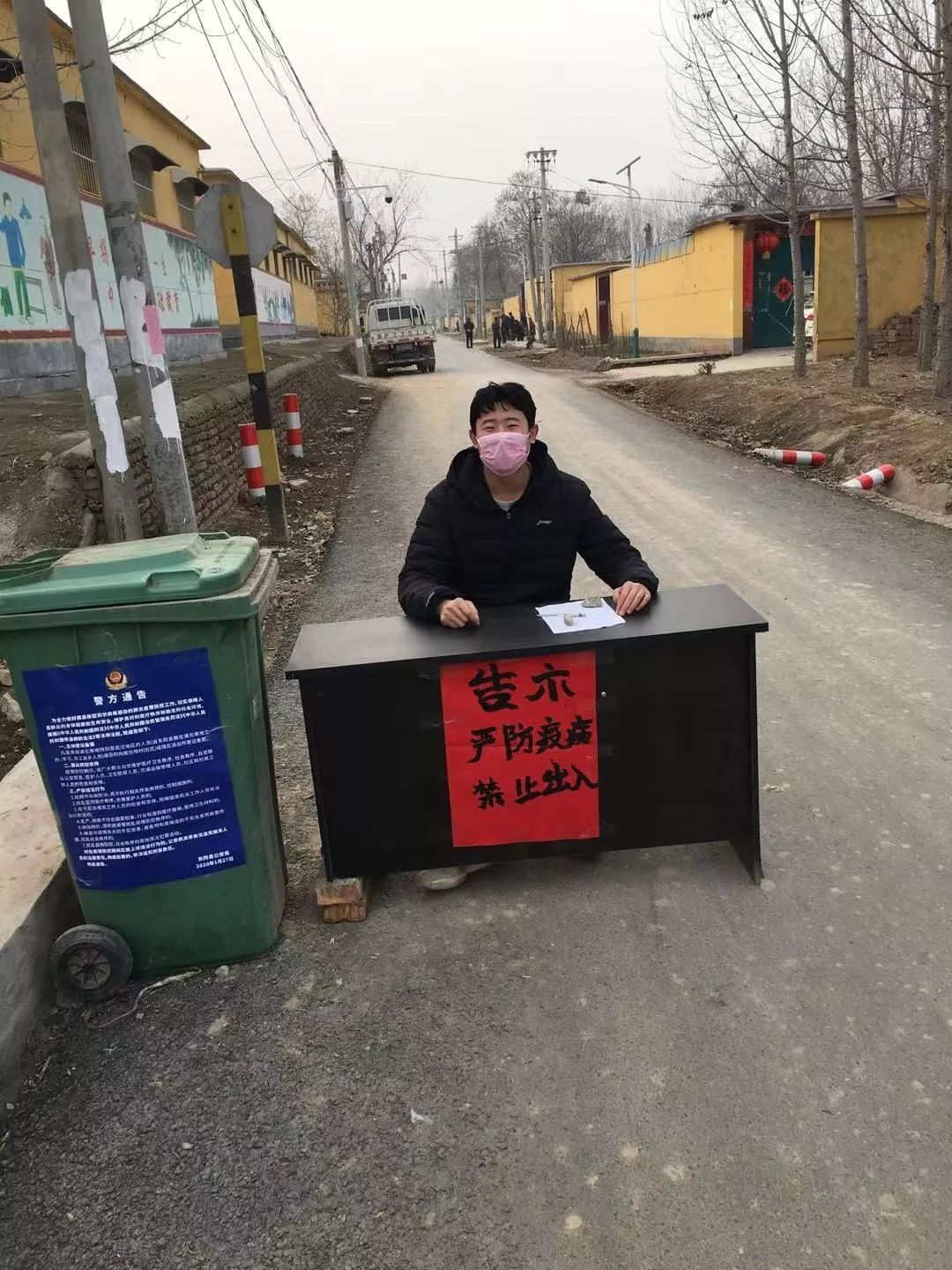 刘磊,农机1803班副班长。刘磊所在的村庄进行了封闭式管理,他主动找到村支书要求加入防控工作,参与村口执勤并帮助村内家庭定期喷洒消毒液等。