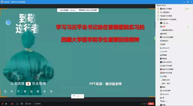 首先,社团指导老师对此次活动背景做了简要介绍。随后,谢瑶引导同学们学习新型冠状肺炎的基本知识和预防措施、了解最美逆行者的先进事迹以及学习习近平总书记给西藏医学院的同学的回信。同时,胡孟娇和王莉两位党员同志分享了自己关于了解“习近平给首钢医院实习的西藏大学医学院学生的回信”的感受和心得。活动结束后同学们积极书写活动感悟,将自己的感受和目标都写进了感悟中,并分享到活动交流群进行交流。