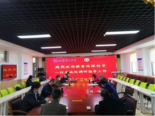 4月17日上午,教务处处长张照录、教务处副处长郑兆青、教务处综合服务中心主任胡付领一行莅临我院调研。本次调研以座谈会的形式在12-114多媒体会议室开展,执行院长刘元义、副院长李志合、院长助理戚彬、教学科夏连明及各系部主任参加了调研。