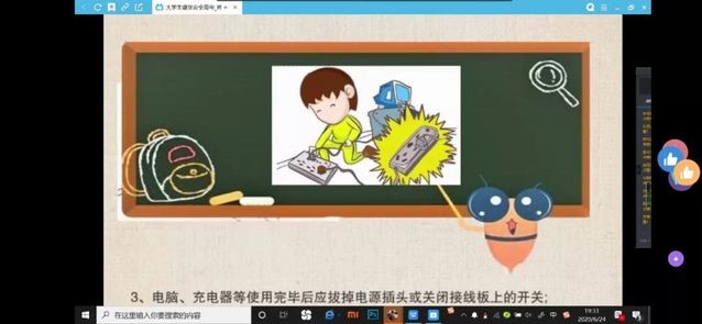 最后,杨玉刚就安全用电问题展开讲解。他提到,一定要重视安全用电问题,生命安全是大事,应时刻注意关于插座使用、宿舍用电、如何应对火灾等问题,并作了详细讲解。同学们纷纷表示受益匪浅。