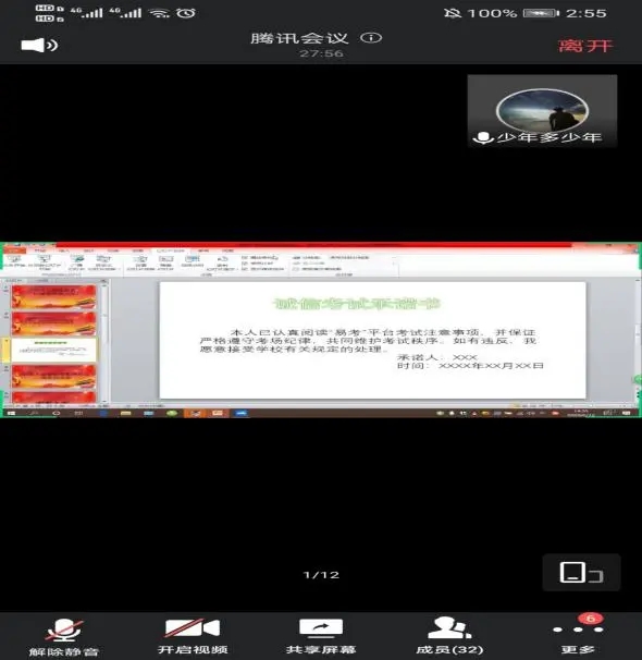 农机1901班积极响应院系要求,于7月1日在线上开展“用实力验证自我 以诚信构筑人生”主题团日活动。本班团支书郭春灵同学带领同学们再次郑重宣誓,承诺会自觉遵守考场纪律,诚信做人,决不作弊;并且根据已经考过的科目,总结几点针对线上考试这种特殊形式应该注意的考试注意事项,同学也纷纷发言补充,说了一些自己考试时遇到过的问题,并给出相应的解决方案。诚信考场是对知识和品行的双重考核,线上考试更是诚信考试的体现。作为当代五有青年,同学们一定会相互监督,考验自我,上交一份优秀的品行答卷。