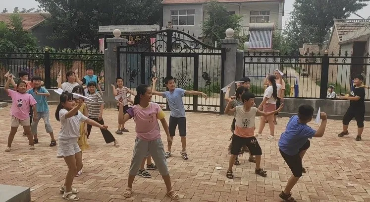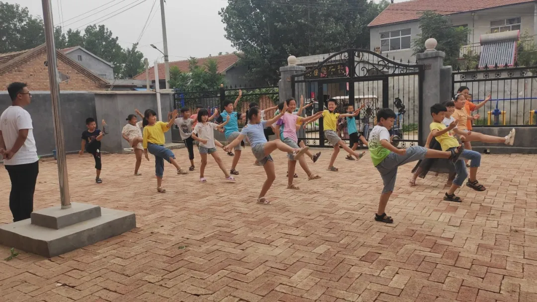 本次支教处于疫情这一特殊时期,为增强学生的抵抗力和自我防护能力,实践团设置了军体拳、舞蹈课,并组织进行趣味运动会。军体拳课上,学生们兴致盎然得称它为“兵哥哥的武术”,在一招一式中增强体魄。舞蹈是艺术的一项,通过教授简单的舞蹈动作锻炼学生的肢体协调能力,提升气质。除此之外,队员挑选天气凉爽的下午开展了趣味运动会,每位老师负责一个独立项目,学生们闯关盖章,通过积分卡选出最优秀的“小小运动员”。其中一项活动为“放飞梦想”,由所有老师带领各自小组进行,学生们在纸上写下自己的梦想,在老师的指导下控制这架承载梦想的飞机尽力飞得更远,阳光正好,伴着点点微风,学生们与老师一起向着远方用力放飞了自己的梦想。少年时的梦想是最天真、最单纯的。未来可期,希望每一位孩子都能在成长中找到自己的梦想,用自己的努力去实现这些年少时的期望。在疫情期间用有趣的方式锻炼身体,增强抵抗力,同时这些活动让部分内向腼腆的留守孩子慢慢融入团体,打开心扉,他们需要受到关注,需要加以引导,从而才会在生活中更加积极向上,阳光开朗。