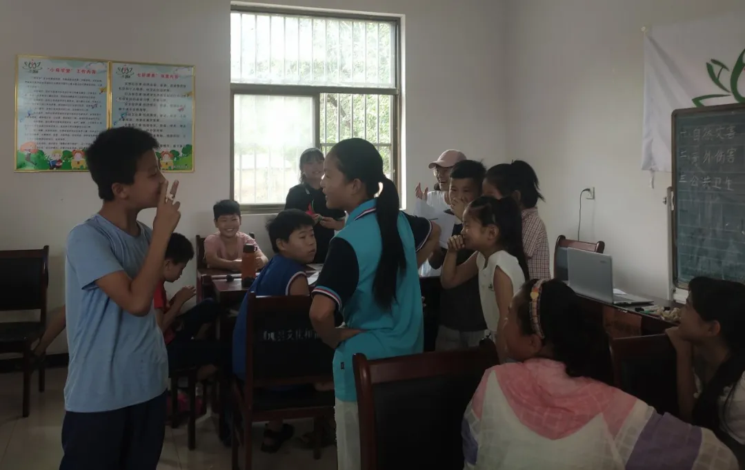 实践团成员注重通过实践激发学生们的学习乐趣,让学生在各种活动、游戏中学会知识,在实验、实践中领略知识的魅力。“新老师”们本着知行合一的原则引导学生上好每一节课,科普课上,在听完气流与压强的相关知识后,学生们通过气球浮起的游戏真正感受到气流与压强的存在;在安全教育课上,学生们自导自演情景剧,演绎生活中可能出现的危险情况,并提出相应的解决方法。基础课程的设计迎合当地的学情状况,将英语课分为音标课和口语课,一方面可以提高学生的英语水平,另一方面可以增加英语的生活实用。授人以鱼不如授人以渔,音标的识记有利于学生在后期英语学习中自纠读音,口语练习有利于学生锻炼英语的应用技能提高实用水平,最终提高基础英语的掌握水平。作文训练课,通过观看电影让学生们自拟题目,发挥想象,书写自己的观影感受、启示或故事梗概这类方式进行,并借助加分制鼓励学生在全班朗读自己的作品,老师会对学生的作文进行了细致的书面点评,总结作文中出现的普遍问题及个性化修改建议,并对于作文的主题、措辞及助词的使用进行讲解。