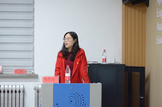 培训分为两场进行,第一场由齐丹丹主讲。她围绕“什么是学生干部”、“为什么当学生干部”、“学生干部需要干什么”三个问题进行阐述。齐丹丹讲到,学生干部在学校中扮演了纽带、榜样、臂膀的角色,学生干部应协助老师并且服务于同学。她提到,学生干部应该牢记自己作为学生、干部、助手的使命,充分发挥自己引领凝聚、组织动员以及联系服务的能力。她通过漫画展示的形式,告诫学生干部不应该沾染“官气”,她勉励学生干部找好自己的定位,更好地服务于同学。