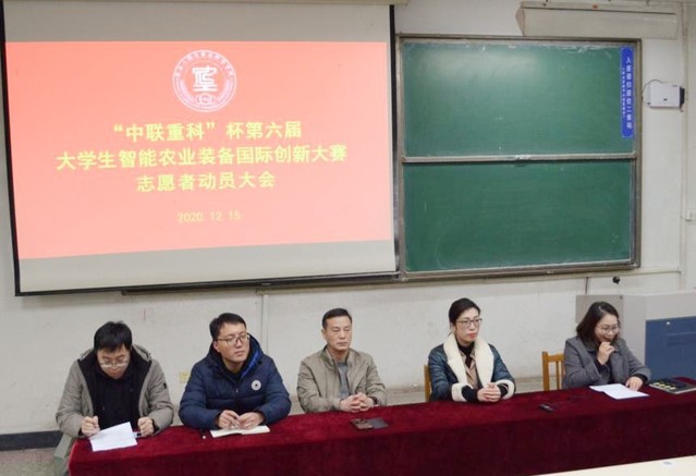 为提供更周到、细致、热情的志愿服务工作,为赛事增光、为学校添彩,12月15日,我院于4号教学楼103教室举行“中联重科”杯第六届大学生智能农业装备国际创新大赛志愿者动员大会,学院执行院长李志合、党总支副书记戴洁、辅导员苏新勇、魏洪磊出席,农装大赛全体学生志愿者参加此次大会,大会由辅导员郑群主持。