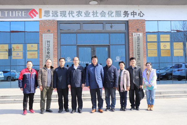 兰院长一行首先参观了思远现代农业社会化服务中心,思远农业董事长白京波向兰院长详细介绍了思远农业发展历程、“六化三标准”社会化服务模式和农业标准化建设工作。兰院长深入了解了思远农业标准体系、品牌建设、农技培训等建设情况。