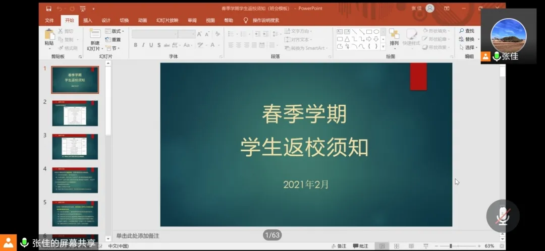 为贯彻落实春季学期疫情防控工作要求,保障学院开学平稳有序,进一步加强学院学生返校安全教育,做好疫情防控常态化时期学生返校工作,2月20日,学院各年级辅导员面向全院本科、研究生召开线上班会,部署学生返校有关事宜。