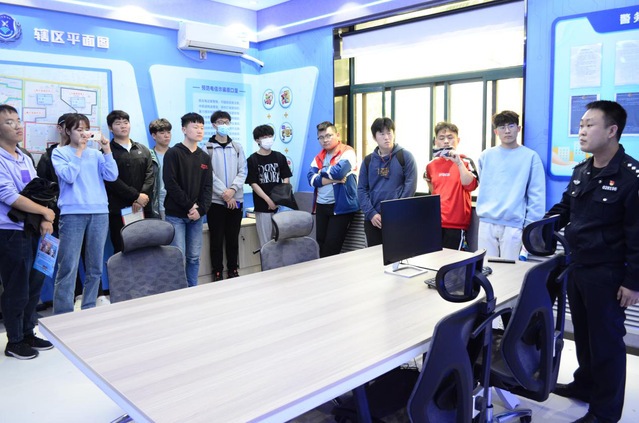 讲座结束后,2020级新生班委前往学区派出所现场参观学习,现场民警以小剧场互动的形式,向同学们展示校园骗局。他特别提醒学生,贪字头上一把刀,不要让自己的小聪明与贪念酿成难以挽回的后果。现场民警还列举了很多他们在工作中真实遇到的网络骗局,如淘宝退货返现、买卖游戏账户、QQ购买机票等。民警随机提问相关问题,现场同学积极回答互动。