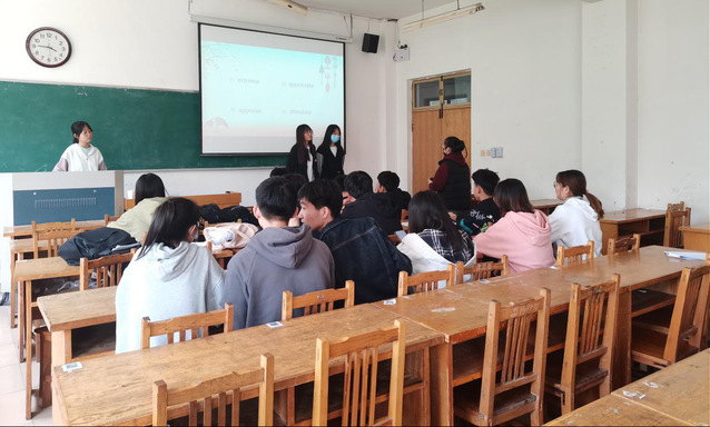 各小组同学提前分组,到达现场后争分夺秒再次熟悉英语单词,积极讨论如何形象描述英语单词,现场气氛热烈。第一组同学率先上场,背景屏幕随机出现英文单词,一名同学通过描述形容单词的汉语意思,台上另外两名同学反应迅速,拼写出对应单词,配合默契。所有参赛队员均完成挑战后大赛结束,比赛结果由学习部成员统计各组答对词汇数目后公布。