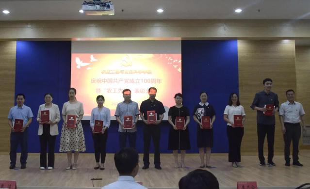 学院领导班子为获得“农工先锋”荣誉称号的党支部、共产党员、获得山东省教育系统优秀党务工作者、淄博市先进基层党组织、山东理工大学优秀党务工作者及优秀共产党员颁奖。