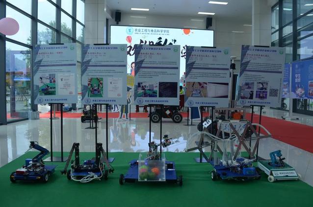 立足生涯教育,融入专业特色,工设系师生设计了涵盖本、硕、博多层次的分年级模块化宣传教育展板及报到通道两侧诙谐幽默的卡通人物,农机系教师、研究生现场布展、讲解基于GIS的农田检测车、植保无人机等智能农业装备与学生科技成果。“走心”的专业元素帮助新同学快速了解学院情况,建立学科自信。