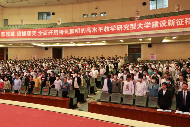 最后,2021级新生入院教育大会在豪迈的《你伴随我》校歌中圆满落幕。
