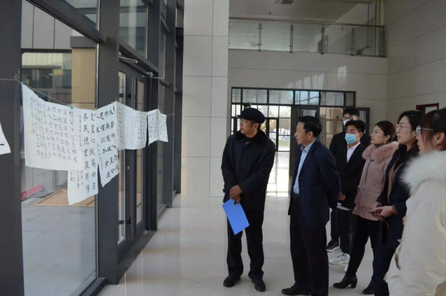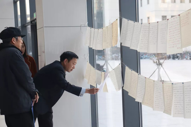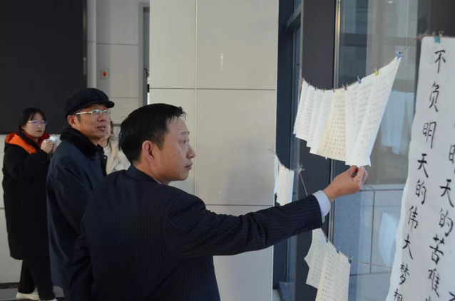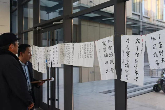 比赛结束后,由工作人员收集并编号。11月23日-24日,于新6号实验楼进行书法作品展示及评审。特邀请图书馆党总支书记王文锋、机械学院党委书记徐启达担任评委。评委老师认真挑选对比,比较作品的起笔、字形、架构、力度、印章等,评选出优秀作品。王文锋书记表示,书法比赛鼓励同学们修身养性,平心静气,不断陶冶情操,传承中华优秀传统文化,加强学生美育教育,增强美育熏陶。