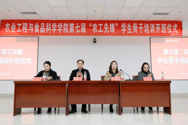 仪式开始,全体起立奏唱国歌。随后,郑群宣读《农业工程与食品科学学院第七届“农工先锋”学生骨干培训方案》,就培训课程、培训安排、培训考核及培训纪律进行了介绍。