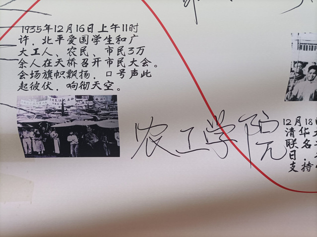 我院学生代表共同参加出旗仪式、唱国歌,并在国旗下庄严宣誓,一同观看“一二·九”学生爱国运动纪念展览,并且在长卷上签字留念。随后,我院学生代表共同为线上“山东理工大学公益林”浇水,为青山绿水贡献自己的一份力量。