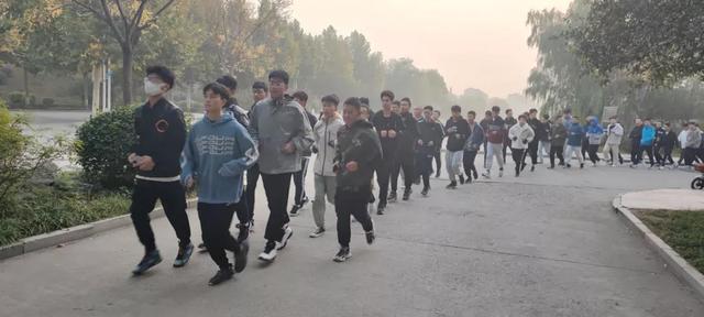 周一周二为跑操时间,跑操前期,学生以“一条龙”的形式进行跑操,增加跑操活动的趣味性、运动性,调动跑操积极性。后期,为更好的控制跑操速度,学生以班级为单位进行跑操,增强跑操的有序性,使每个学生都跑动起来。清晨,天刚刚破晓,学生们喊着响亮的口号,为原本静谧的校园注入活力与色彩,充分展示了新时代青年学子昂扬向上的青春风采与精神风貌。