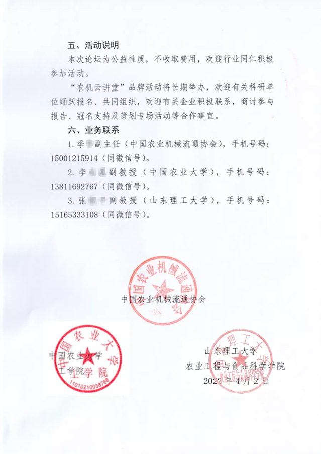1.季副主任(中国农业机械流通协会),手机号码:15001215914(同微信号)。