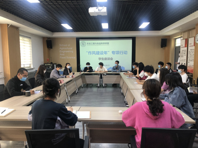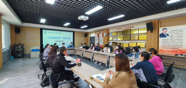 为全面落实《农业工程与食品科学学院“作风建设年”专项行动实施方案》,通过作风大转变带动工作大提升、事业大发展。4月22日,我院于12教121召开“作风建设年”专项行动学生座谈会。学院党委副书记戴洁、副院长戚彬、教学工作办公室主任夏连明、学生工作办公室主任张佳、相关辅导员及学生代表参加。座谈会由戴洁主持。