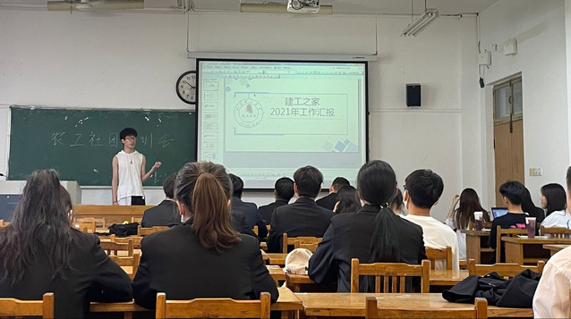 首先,作为2021年度明星社团“建工之家”的会长,刘攀超同学就2021年“建工之家”的发展、管理和运行等社团建设方面的情况进行了讲解。刘攀超同学从学院品牌活动入手,扩展到科技文化艺术节等大类活动,围绕着活动要求、时间安排、准备工作等方面展开了讲解,说明了社团负责人应尽的义务及责任,强调了部门建设的重要性、社团干事的责任、社团活动要求和活动重要性等问题,同时就新闻稿件的重要性、财务报销问题及社团评优方面的问题做出了解答、提出了建议。