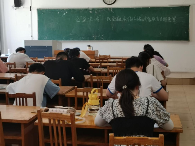 此次知识竞赛采用线上初赛和线下决赛相结合的形式开展,初赛于5月26日19点通过易班优课课群线上进行,决赛于5月28日14点在12号教学楼101教室开展。题目内容主要涉及金融知识和防诈骗知识两个方面,初赛和决赛题目均由判断、单选、多选共50道题目组成。同学们热情高涨,参与积极性高,活动开展十分顺利,共计100余人参加。