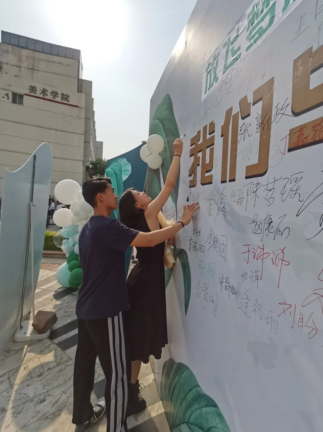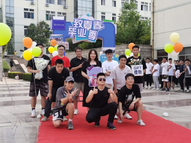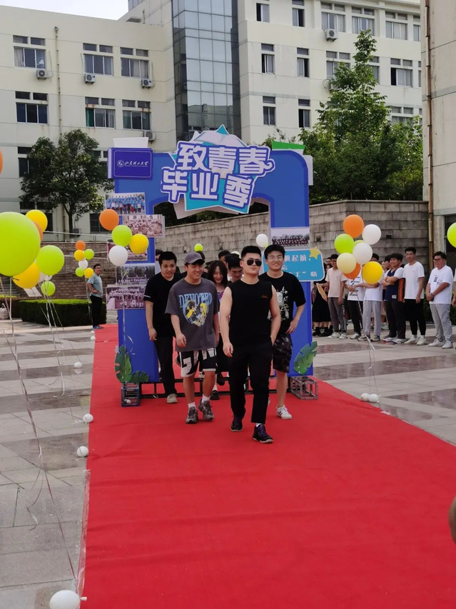 万物葱茏的季节,天朗气清的日子,翩翩少年,整装待发。随着激扬的音乐响起,毕业盛典正式开始,在老师同学们的深情凝睇下,毕业生们身着盛装,意气风发,昂首阔步,走上红毯,怀感恩之心回望来时路,励奋斗之志迈向新征程。红毯中心的签名墙前,毕业生们写下名字,驻足合影,留下青春记忆,表白“爱理”真情。红毯尽头的校友台处,大家逐一扫码,注册“山东理工大学一家人”小程序,加入学院校友群,领取辅导员亲手书写寄语的明信片,自此毕业生与母校、与学院便血脉相连,多了一座可以回归与依靠的港湾。