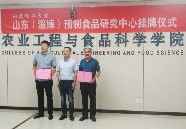 8月19日上午,我院在6号实验教学综合楼举行成立院级研究机构“山东(淄博)预制食品研究中心”揭牌仪式。会议由食品科学与工程系主任郭衍银教授主持。参加会议的有淄博市预制食品专业委员会秘书长王成,博山区人大常委会副主任、博山餐饮产业发展专班总负责人夏艳华,中国教育后勤协会接待服务分会餐饮专业部主任、中国烹饪大师李昌顺,山东理工大学后勤处副处长、饮食服务中心主任杨嵩先,以及我院执行院长李志合等相关领导和专家。
