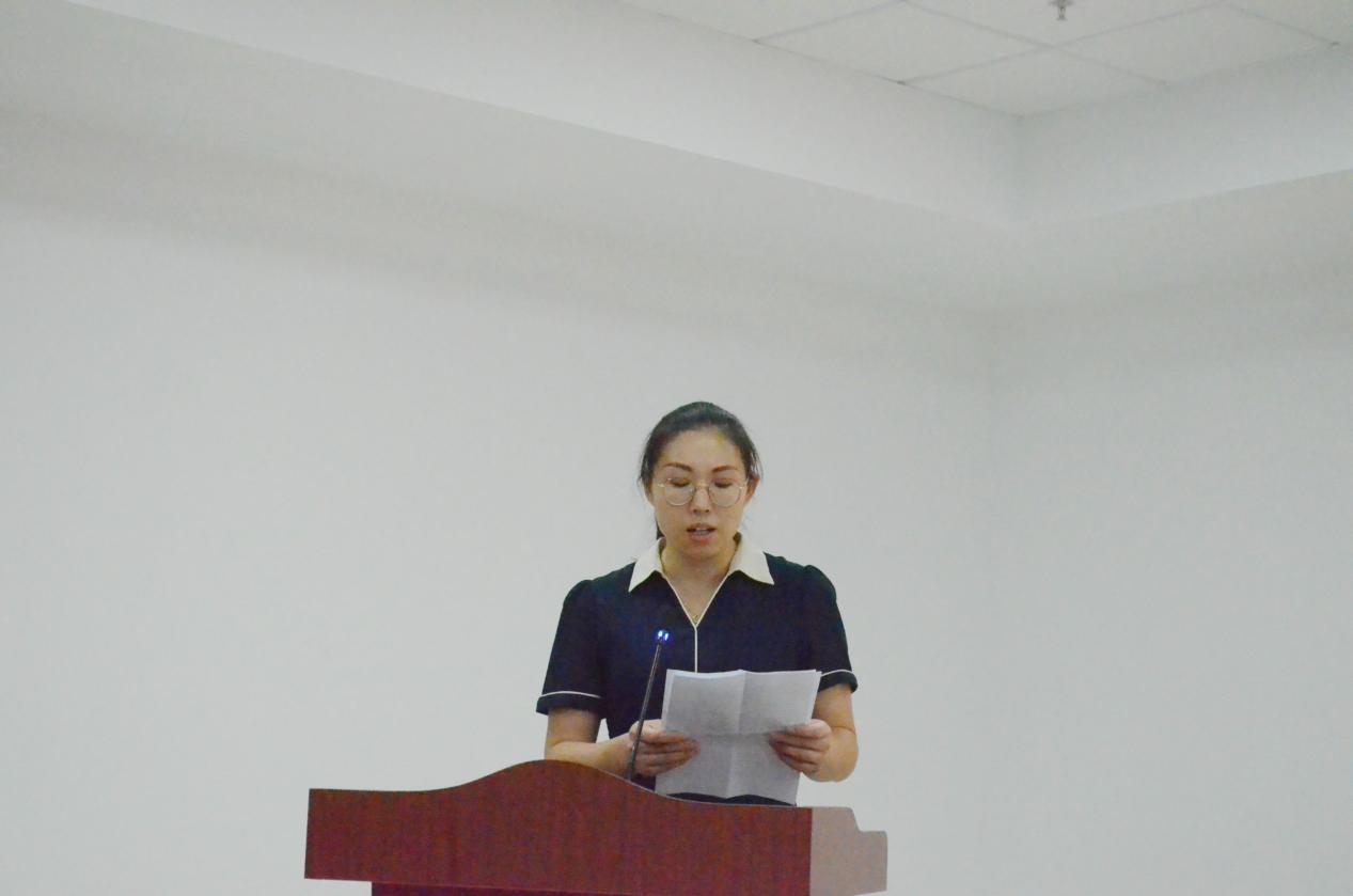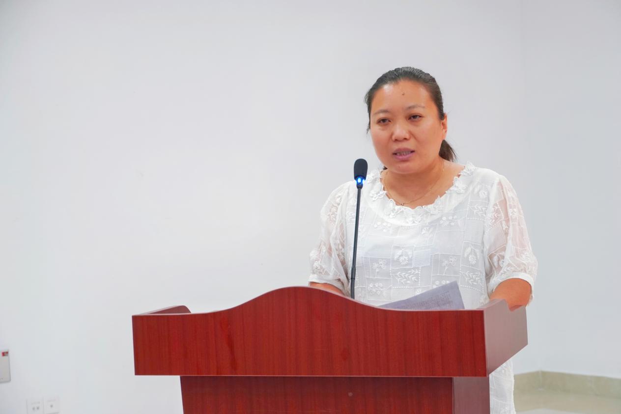 教学先锋获奖代表贾鹏发言,她分享了自己参加教学比赛的成长经历与体会,表示在今后的教学中将继续深入探索,创新教学方法,读懂学生,创造高效率课堂。